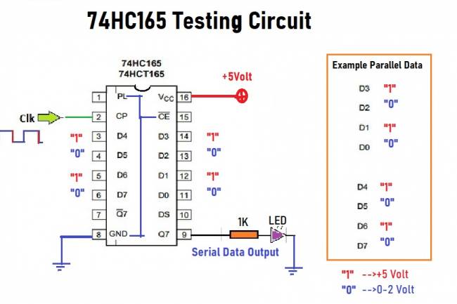 Parallel to Serial Converter with 74HC165 - Shift Register Application